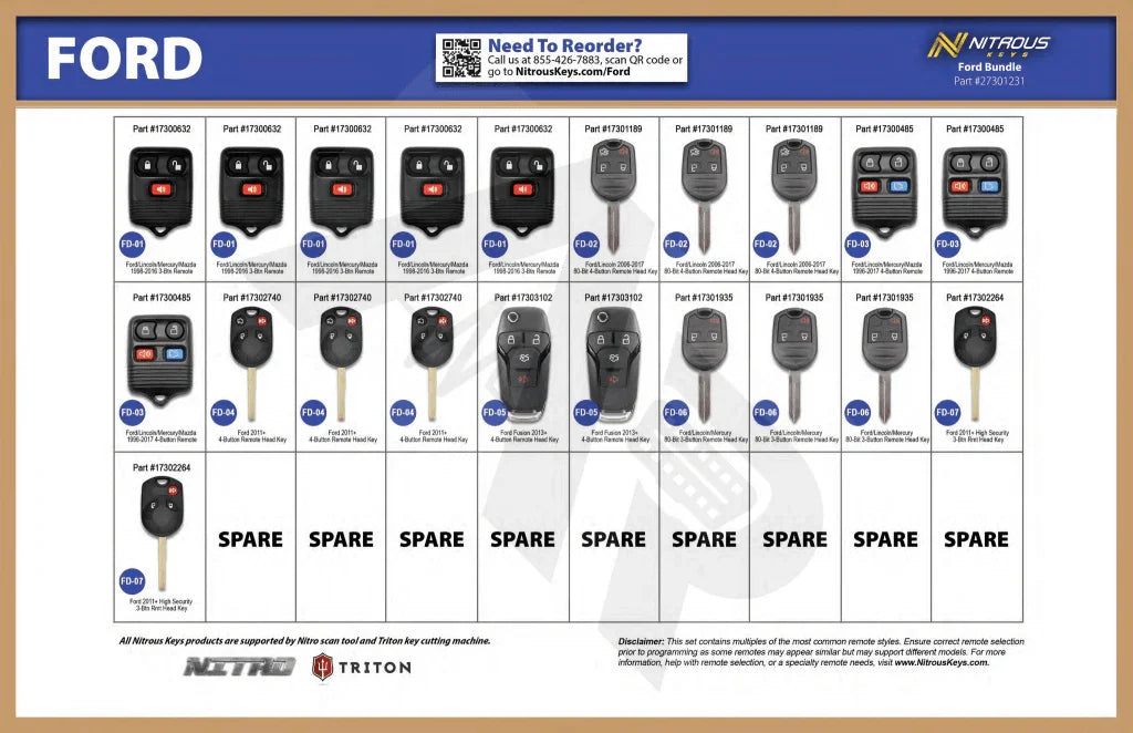 XT-FORDBUNDLE5 x 17300632 (FD-01) Ford/Lincoln/Mercury/Mazda 1998-2016 3-Btn Remote