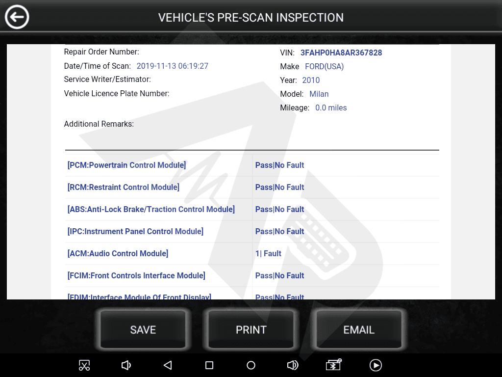 • Auto-scan all modules to display codes on screen. Quickly erase codes in all systems with one click.